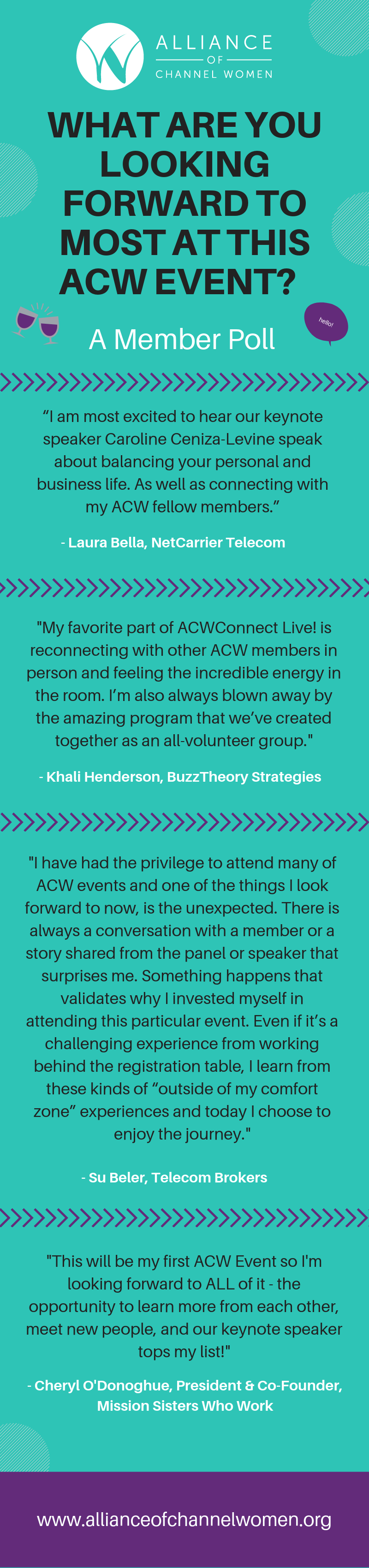 With our upcoming event at Channel Partners Evolution, we polled membership asking, ‘What you are looking forward to most about the upcoming ACW Event?’ Here is some great feedback we received.
